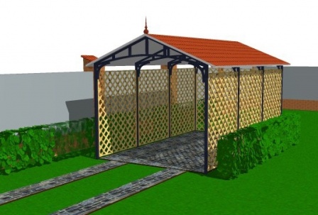 Zártszelvényű fém és fa kombinációjából készül, LTP 20 LINDAB tetőfedő profil fedéssel, több színben. A fém részek egy környezetkímélő eljárással, tűzihorganyzással olyan bevonatot kapnak, mely festés nélkül is évtizedekre időtállóvá teszi. Mobilizálható, összeszerelése szakértelmet nem igényel. Több célra is használható: autó tárolására (zárt garázsnak is kialakítható), épületek mellé (terasz) előtérnek, szénatárolónak, kutyakennelnek, tető nélkül szőlő- vagy rózsalugasnak.